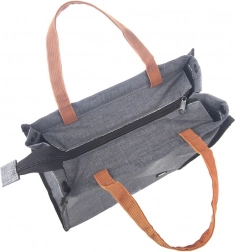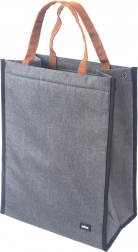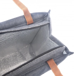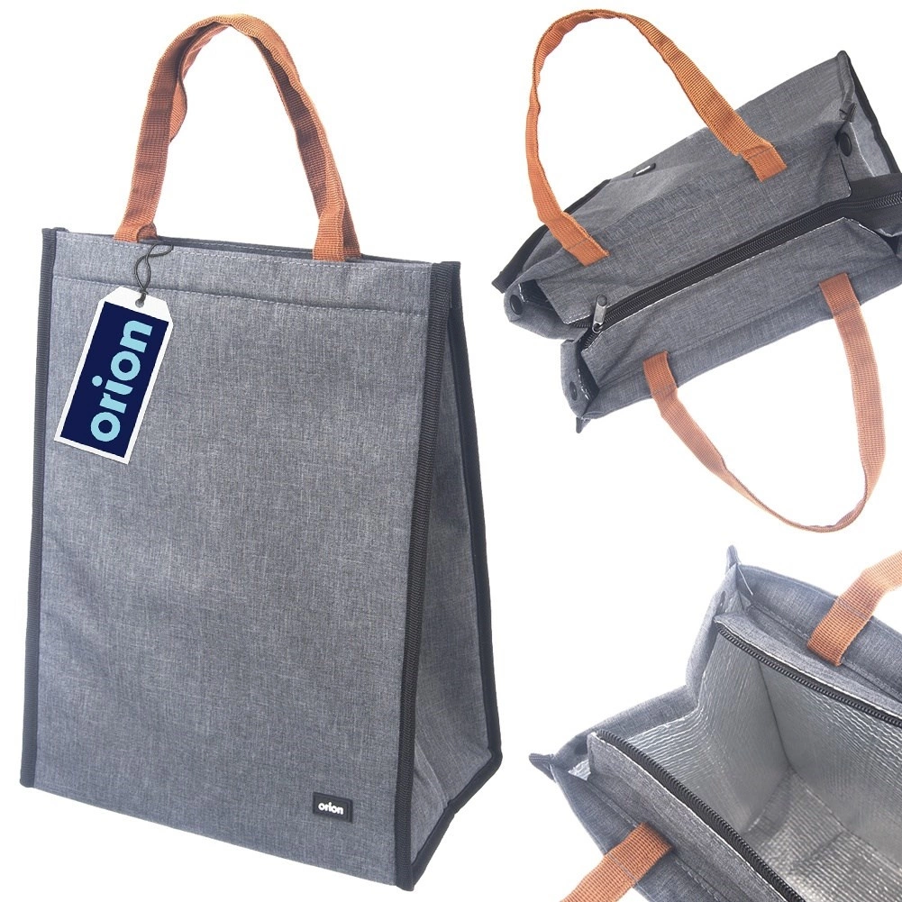 Ta stilska termo torba s prostornino 14 litrov zanesljivo ohranja hladne in tople jedi zahvaljujoč kakovostni termoizolaciji. Robusten siv poliester je odporen proti obrabi, rjava ročaja prijetno ležita v roki, zadrga po celotni dolžini pa olajša dostop do vsebine. Praktičen zadnji žep na zadrgo sprejme drobnarije, ključe ali robčke.