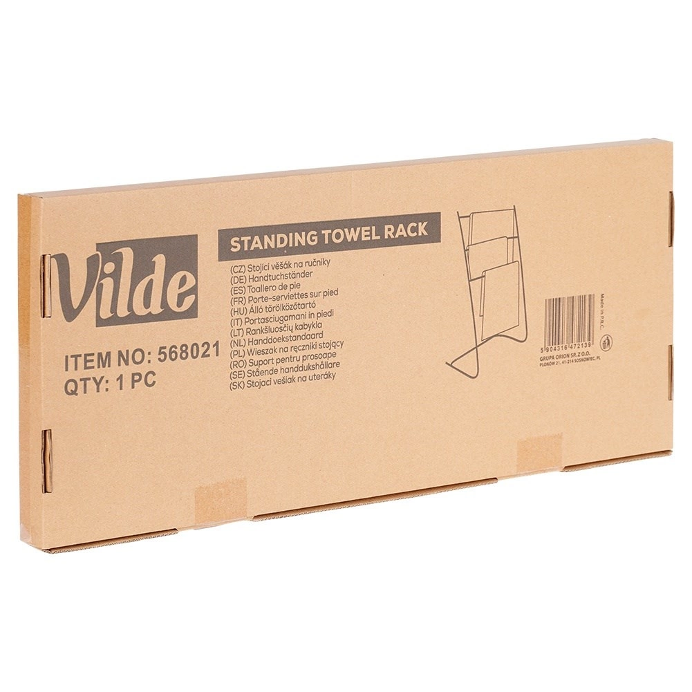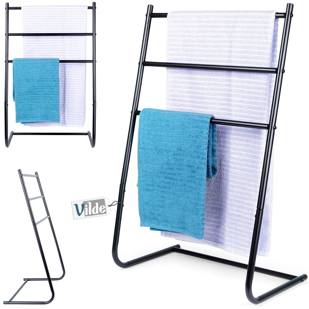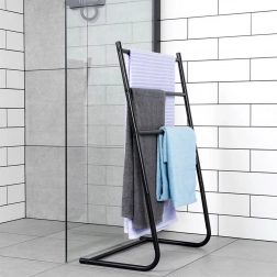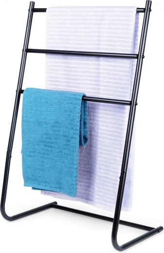 Praktično, prostostoječe stojalo za brisače ali oblačila s tremi prečkami ohranja vašo kopalnico urejeno in elegantno. Trdno jeklo s prašnim lakiranjem zagotavlja dolgo življenjsko dobo in stabilnost, medtem ko kompaktne mere odlično pristajajo tudi manjšim prostorom.