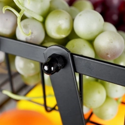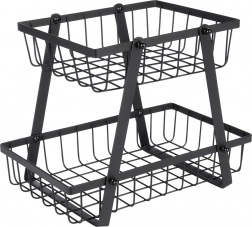 Skupna dimenzija kompleta je 28 × 17,5 × 21 cm. Spodnja košara meri 28 × 17 × 6 cm, zgornja 21,5 × 17 × 6 cm. Mat črna kovina zagotavlja odpornost in stabilnost, praktični ročaji pa olajšajo prenašanje. Košara je odlična tudi za kozmetiko, toaletne potrebščine, pisarniške drobnarije ali pekovske izdelke.