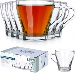 Komplet šestih univerzalnih skodelic z ročajem znamke VILDE je idealen za čaj, kavo, vodo, sok in mešane napitke. Prosojne stene poudarijo barvo napitka, debelo steklo pa zagotavlja odpornost in stabilnost. Zahvaljujoč udobnemu ročaju se skodelice varno držijo tudi pri postrežbi vročih napitkov.