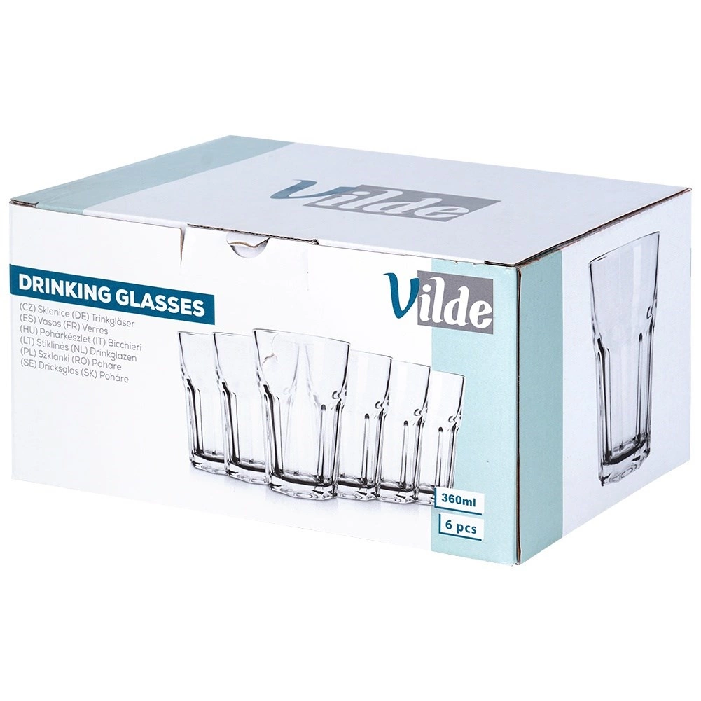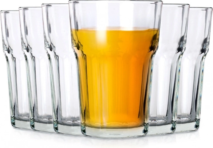 Idealni za vodo, limonade, sokove in koktajle. Komplet šestih kosov pokrije vsakodnevne potrebe gospodinjstva ali manjšega obrata.