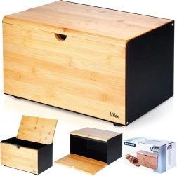 Praktična in prostorna škatla za kruh, ki združuje odporno kovinsko ohišje z naravnim bambusom, je zasnovana za vsakodnevno uporabo. Zahvaljujoč čvrstemu in tesnemu zapiranju zanesljivo omejuje dostop zraka, zato pecivo ostane dlje mehko in okusno. Dvojni pokrov omogoča hiter dostop do vsebine natanko tako, kot vam najbolj ustreza.