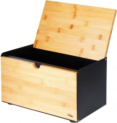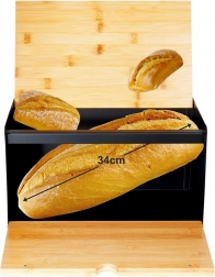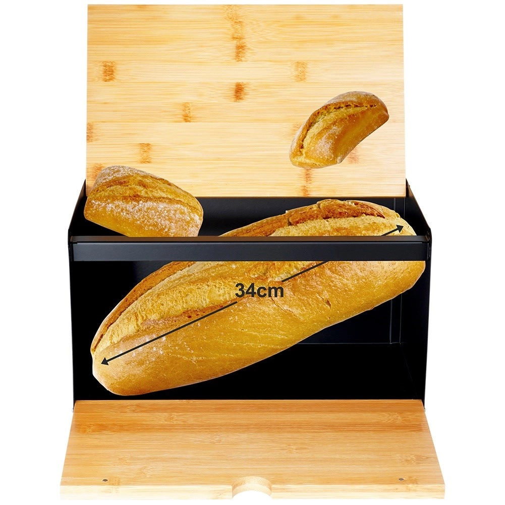 Praktična rešitev 2 v 1: zgornji bambusov pokrov služi kot trpežna deska za rezanje kruha in pekovskih izdelkov neposredno ob škatli.