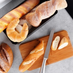 Bambusni pokrov lahko uporabite za udobno rezanje pekovskih izdelkov. Prihrani prostor in je vedno pri roki.