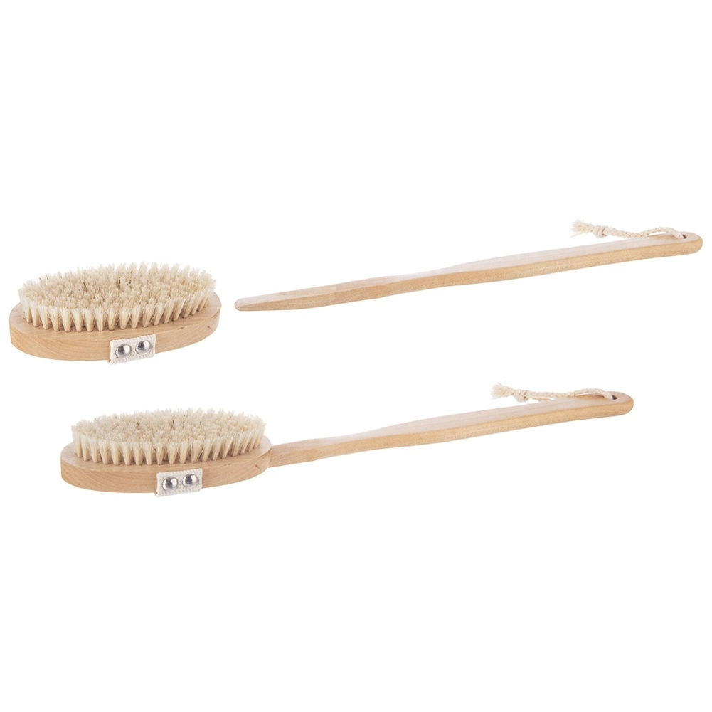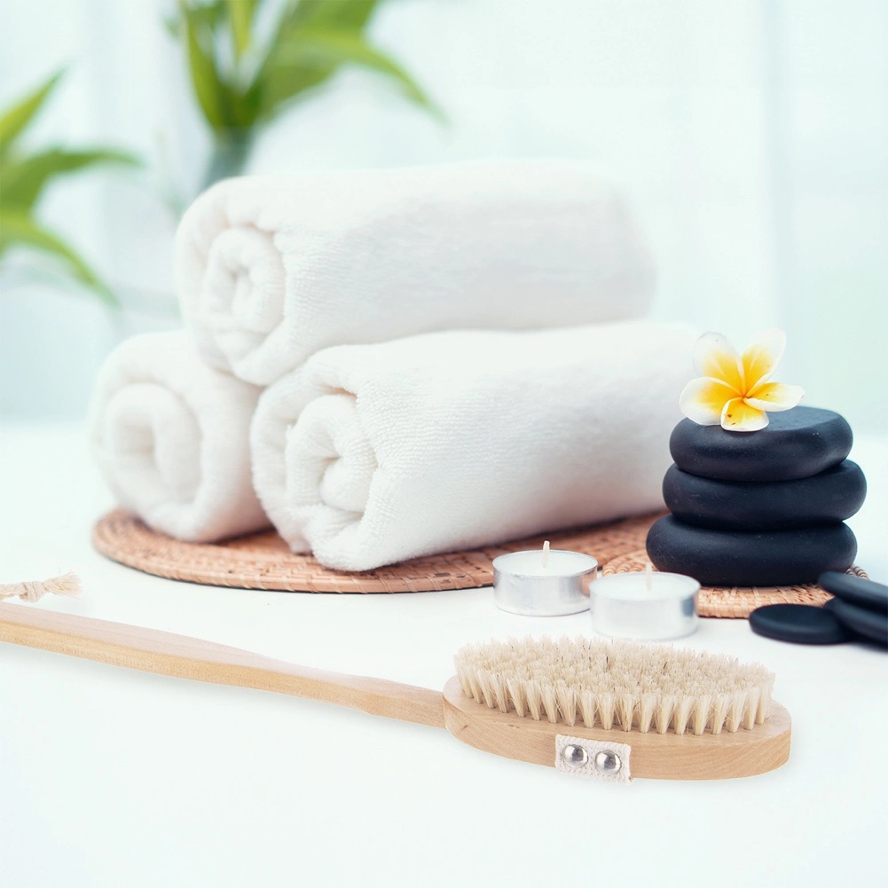 Privoščite svoji koži vsakodnevno nego kot v spa centru. Lesena masažna krtača 2v1 dolžine 42 cm z glavo 12,5 × 7 cm je idealna za doseganje hrbta in natančno nego celega telesa. Uporabljate jo lahko na suho za intenzivno eksfoliacijo in učvrstitev kože ali na mokro med prhanjem in kopeljo.