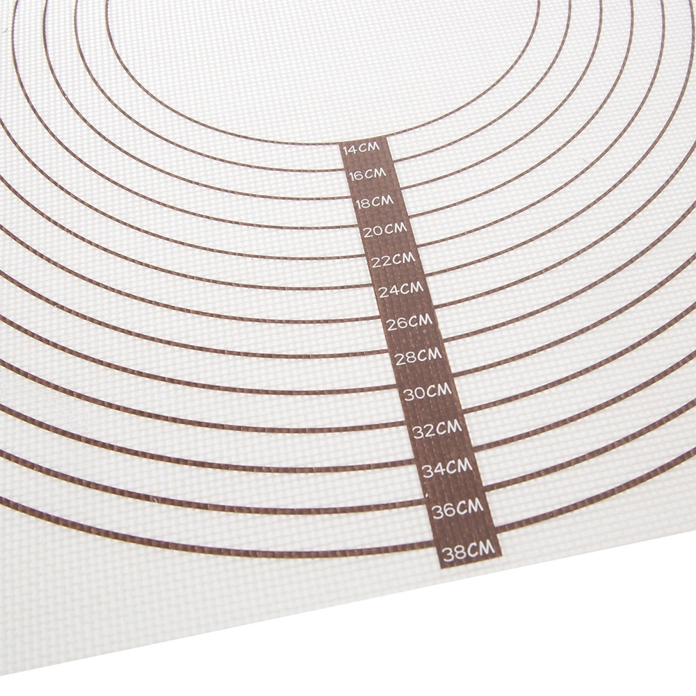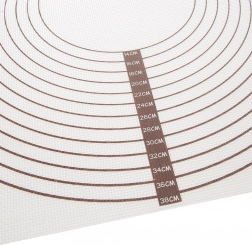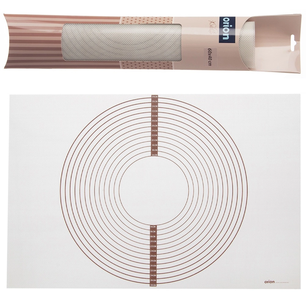 Ta kakovostna silikonska podloga z ojačitvijo iz steklenih vlaken ponuja veliko delovno površino ter natančne merilne kroge za pico in korpuse in lestvico v centimetrih. Zahvaljujoč neprijemljivi površini zadostuje malo moke in testo se ne lepi.