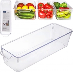Ta praktičen kuhinjski organizator iz kakovostne prozorne plastike olajša razvrščanje in shranjevanje živil v hladilniku in shrambi. Transparentna izvedba zagotavlja takojšen pregled nad vsebino, integriran stranski ročaj pa omogoča enostavno izvlečenje in prenašanje. Ne vsebuje pokrova, zato imate do živil hiter dostop.