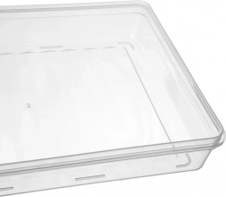 Nizek, zložljiv (stohljiv) oblikovni profil prihrani prostor in ohranja preglednost v vašem hladilniku. Idealno za narezane izdelke.