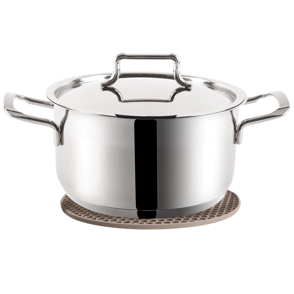 Ta kakovostna silikonska podloga v nevtralni bež barvi je idealna za varno odlaganje loncev, ponv in pekačev neposredno s štedilnika ali iz pečice. Prožen, a čvrst silikon z satastim (honeycomb) vzorcem zagotavlja odlično toplotno izolacijo in zanesljiv oprijem brez drsenja.