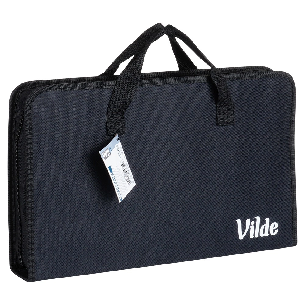 Lahka tekstilna torba z zadrgo in dvojnimi ročaji ohranja pribor pregledno na mestu in olajša prenašanje na vrt, dopust ali piknik.