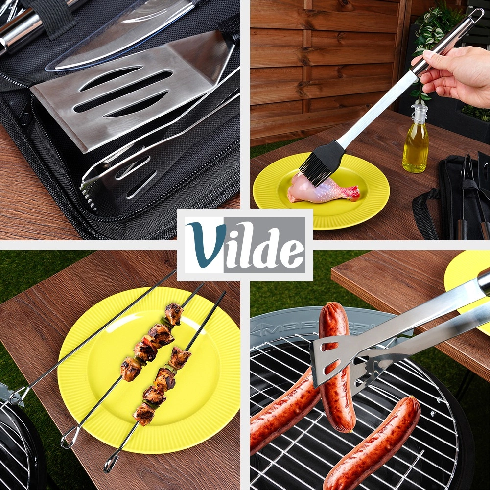 Vse shranite v vzdržljiv tekstilni etui z zadrgo in ročaji, zato bodo orodja organizirana, prenosna in zaščitena. Komplet je odlično darilo za vsakega ljubitelja žara ter praktičen pomočnik za vrtne zabave in kampiranje.