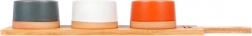 Skledice so iz kakovostnega gresa (vzdržljiva keramika), deska pa iz naravnega bambusa, ki je lahek, čvrst in odporen na vlago. Skledice je mogoče uporabljati samostojno in so primerne za pomivalni stroj.
