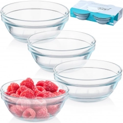 Univerzalne steklene skledice s premerom 10,5 cm in višino 4,5 cm so odlične za serviranje hladnih in toplih jedi. Kristalno čisto steklo poudari barve sestavin ter doda pogrinjku čist, brezčasen videz. Set 4 kosov je idealen za družinske večerje, praznovanja in vsakodnevno pripravo sestavin v kuhinji.