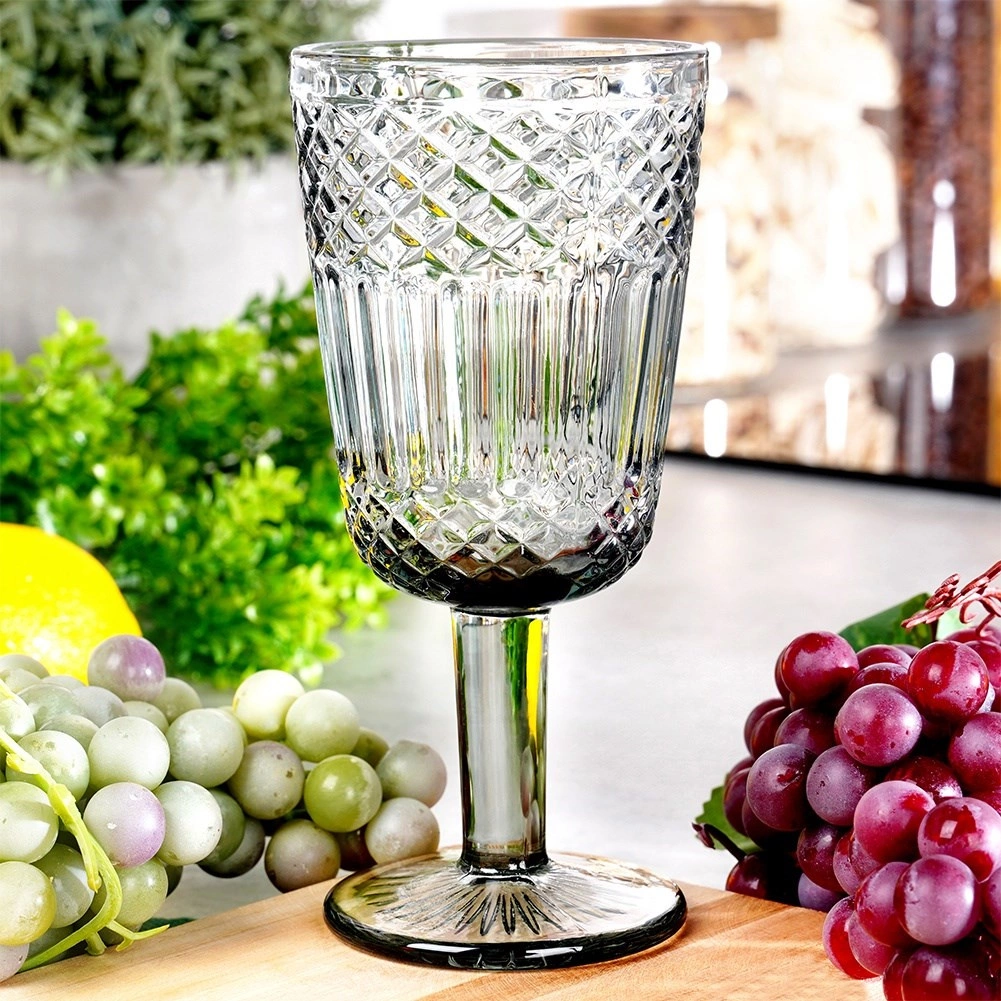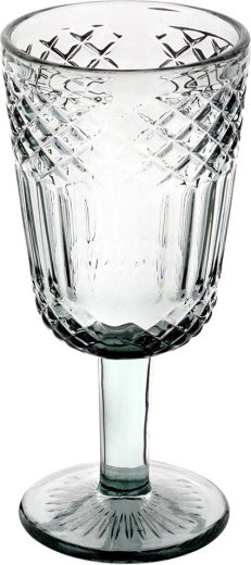 Ta steklena kupa v elegantni dimno črni izvedbi navduši z učinkovitim brušenim dekorjem, ki spominja na kristal. Zaradi univerzalne oblike je primerna za belo in rdeče vino, pa tudi za vodo, limonade ali stilsko serviranje sladic. Brezčasen dizajn se lepo poda na vsako mizo.
