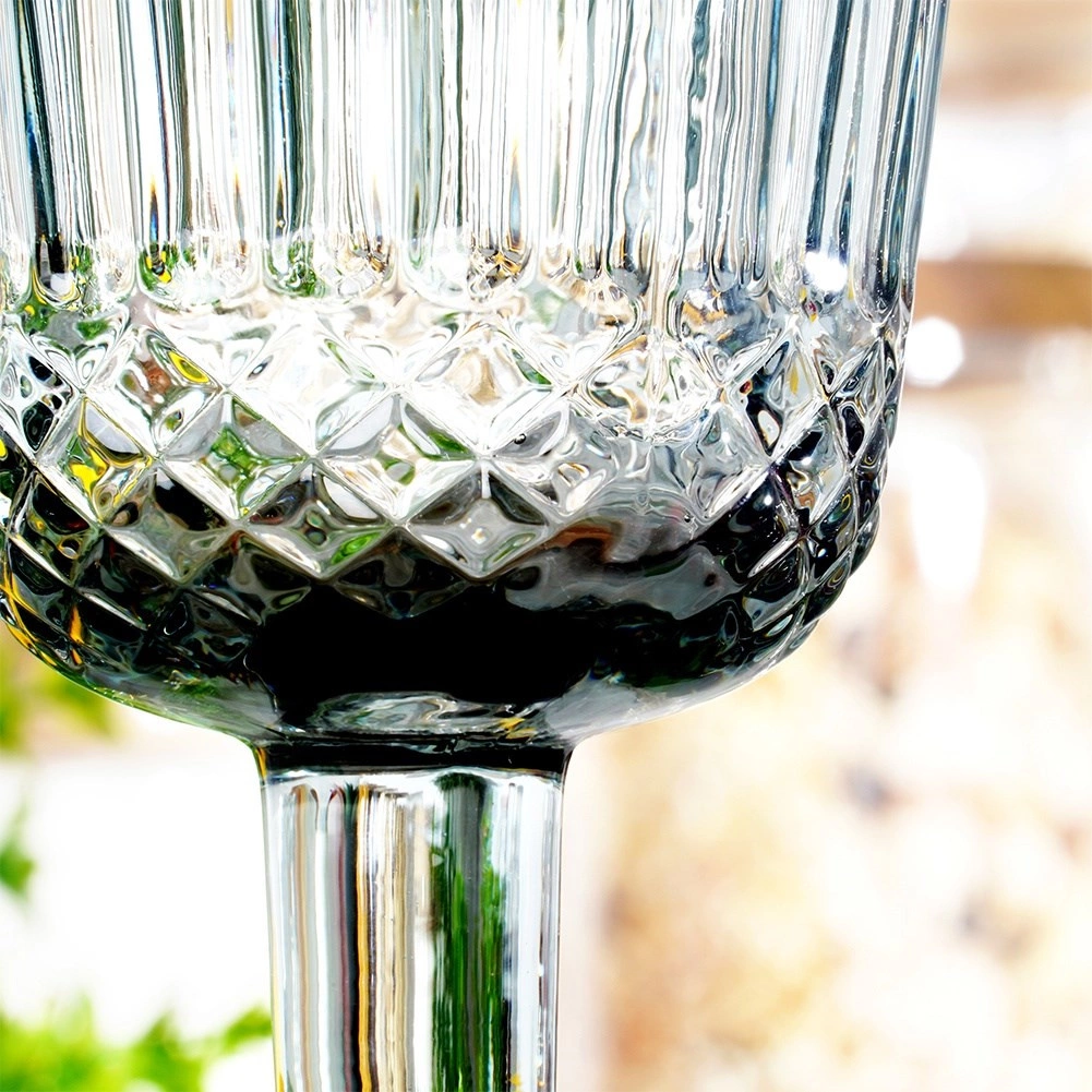Elegantni črni kozarec za vino z brezčasnim brušenim vzorcem ponuja univerzalno uporabo za belo in rdeče vino, pijače in sladice. Izdelan iz kakovostnega debelega stekla v dimno črnem odtenku, ima stabilno osnovo, udobno oblikovano nožico in preprosto vzdrževanje v pomivalnem stroju. Prostornina 270 ml, mere 8 × 17 cm.