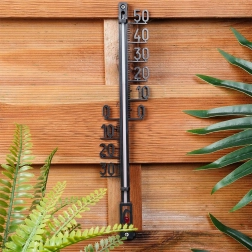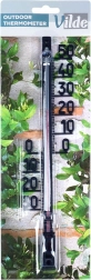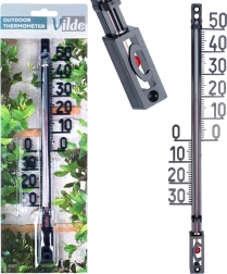 Praktičen in eleganten termometer VILDE natančno meri temperaturo okoliškega zraka v notranjih in zunanjih prostorih. Zahvaljujoč velikim številkam in kontrastni lestvici je enostavno berljiv tudi z večje razdalje. Eleganten črn dizajn se odlično poda na steno hiše, ograjo, balkon ali v vetrolov.