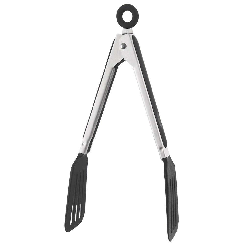 Praktične klešče za vsakodnevno uporabo v kuhinji in pri žaru. Zahvaljujoč robustnemu nerjavnemu ohišju in toplotno odpornim PBT konicam boste zlahka in varno obrnili meso v ponvi, vzeli kuhano zelenjavo iz vode, premešali solato ali postregli pripravljene jedi. Konice so prijazne do teflonskih, keramičnih, granitnih in drugih nelepljivih površin.