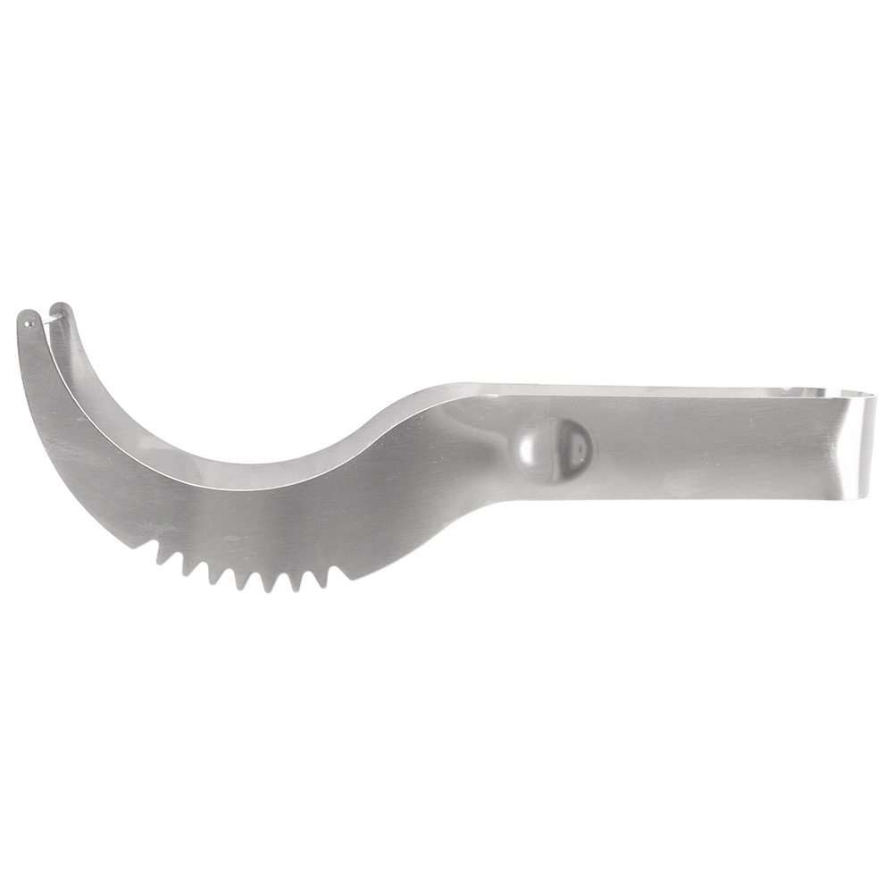 Praktičen rezalnik za lubenico iz kakovostnega nerjavnega jekla za hitro in natančno rezanje na enakomerne kose. Zahvaljujoč ukrivljenemu rezilu in nazobčanemu robu zlahka izrežete meso sadeža, nato pa ga z orodjem kot s kleščami udobno vzamete in postrežete. Odporno nerjavno jeklo, varna in ergonomska uporaba, enakomerni lističi in kocke, primerno za pomivanje v pomivalnem stroju.