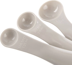 Merilne žlice so izdelane iz odporne, za stik z živili varne plastike, primerne so za pomivalni stroj, praktični povezovalni krožec pa zagotavlja, da se posamezni kosi ne izgubijo. Krožec je mogoče zlahka razpeti in žlice uporabljati tudi posamezno.