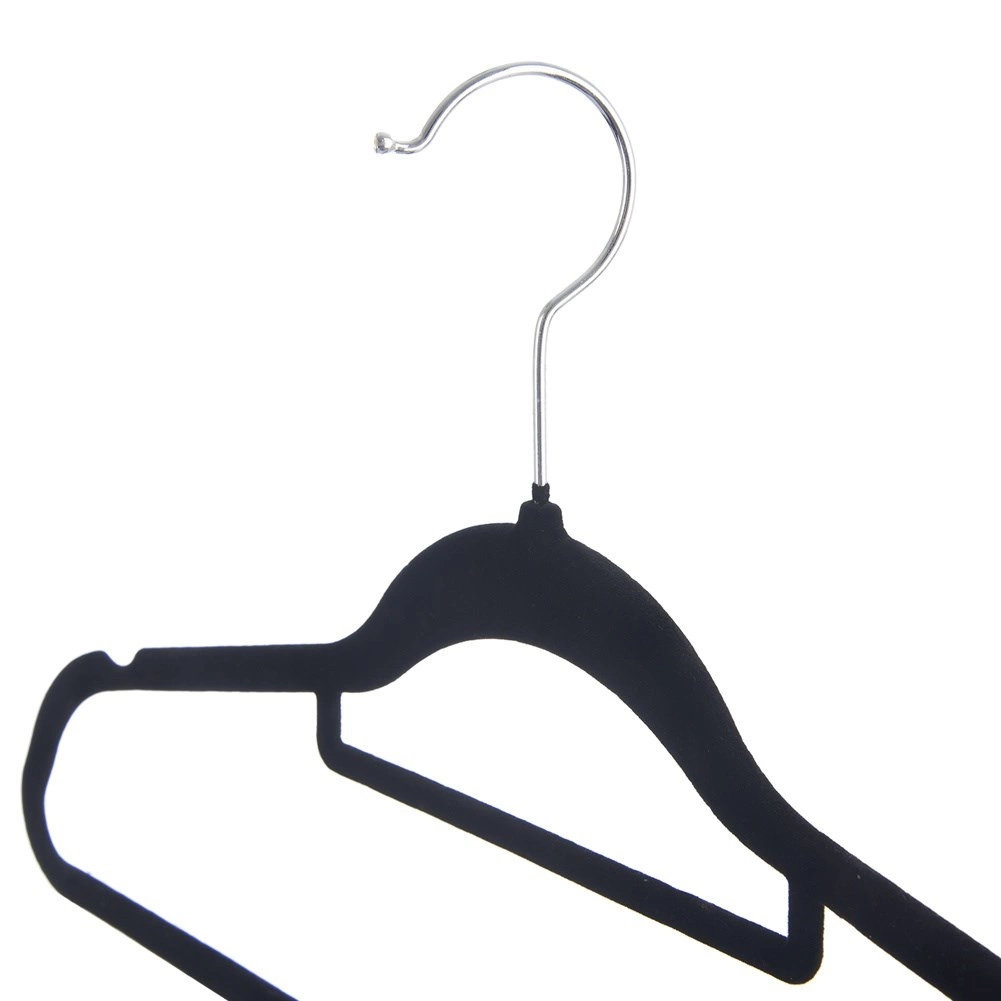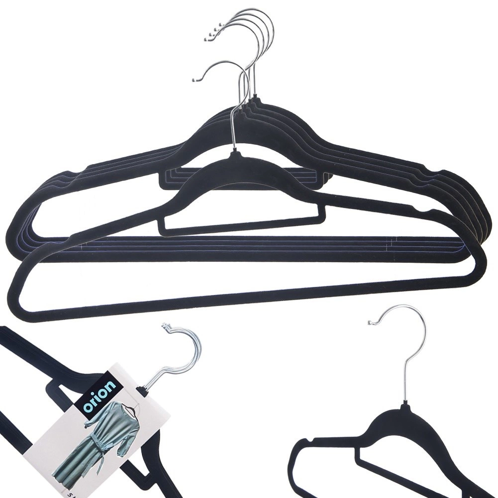 Organizirajte svoja oblačila stilno in brez mečkanja. Obešalniki z nežnim velurastim površjem zanesljivo držijo tudi drseče materiale, ščitijo tkanine in jih zaradi vrtljive kljukice zlahka namestite v vsak prostor. Elegantna črna izvedba se poda vsaki omari.
