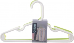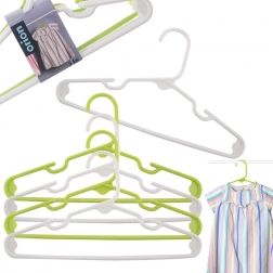 Izdelano iz kakovostne plastike v beli in svetlo zeleni barvi, ki se ne deformira in prenese vsakodnevno uporabo. Zahvaljujoč kompaktnim meram 29,5 × 16,5 × 0,5 cm so obešalniki natančno prilagojeni otroškim velikostim in pomagajo ohranjati red in organiziranost v omari.