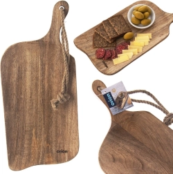 Stilska in trpežna deska iz mangovega lesa za vsakodnevno rezanje in elegantno serviranje. Ima praktičen ročaj z vrvico za obešanje, dimenzije 44,5 × 20 cm in debelino 2 cm. Mangov les je naravno odporen na vlago, se hitro suši in izstopa z čudovito naravno teksturo. Primerna za pripravo in serviranje sirov, mesnin in prigrizkov.