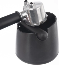 Protizdrsna osnova s filc podlogo drži posodo trdno na mestu, gumijasta palica blaži udarce in ščiti portafilter.