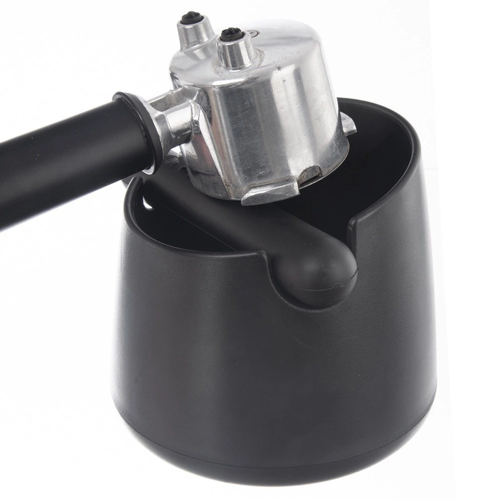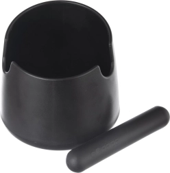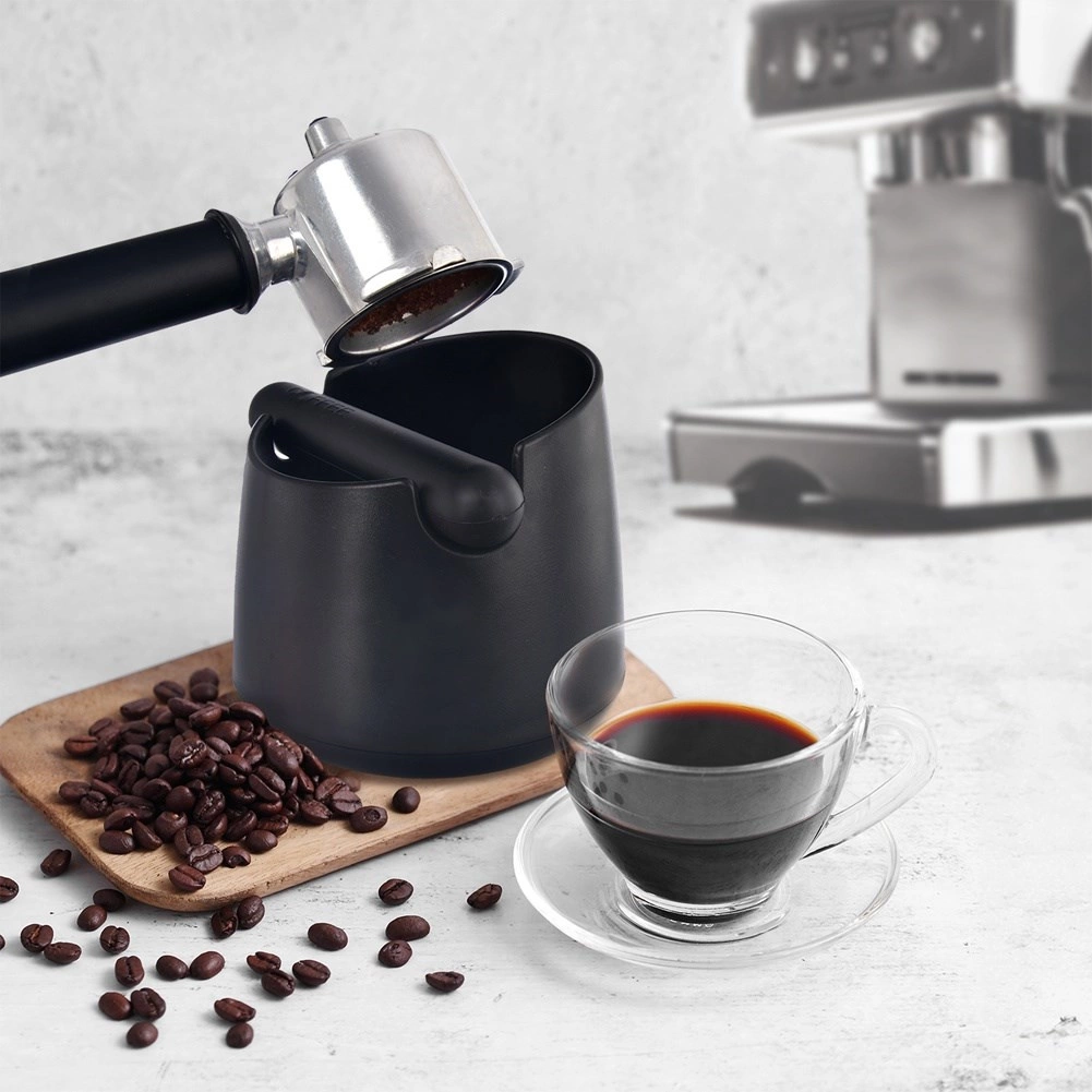 Ohranite svoj kavni kotiček čist in urejen. Ta posoda za iztapkavanje uporabljene kave zlahka sprejme več pogač, zato vam ni treba stalno hoditi do smeti. Robustna plastika v elegantni črni barvi, odstranljiva gumijasta palica in preprosto vzdrževanje jo naredijo za idealen dodatek k ročnemu (portafilter) kavovarju.