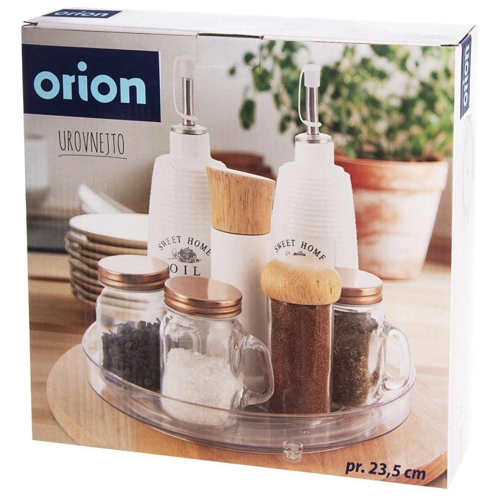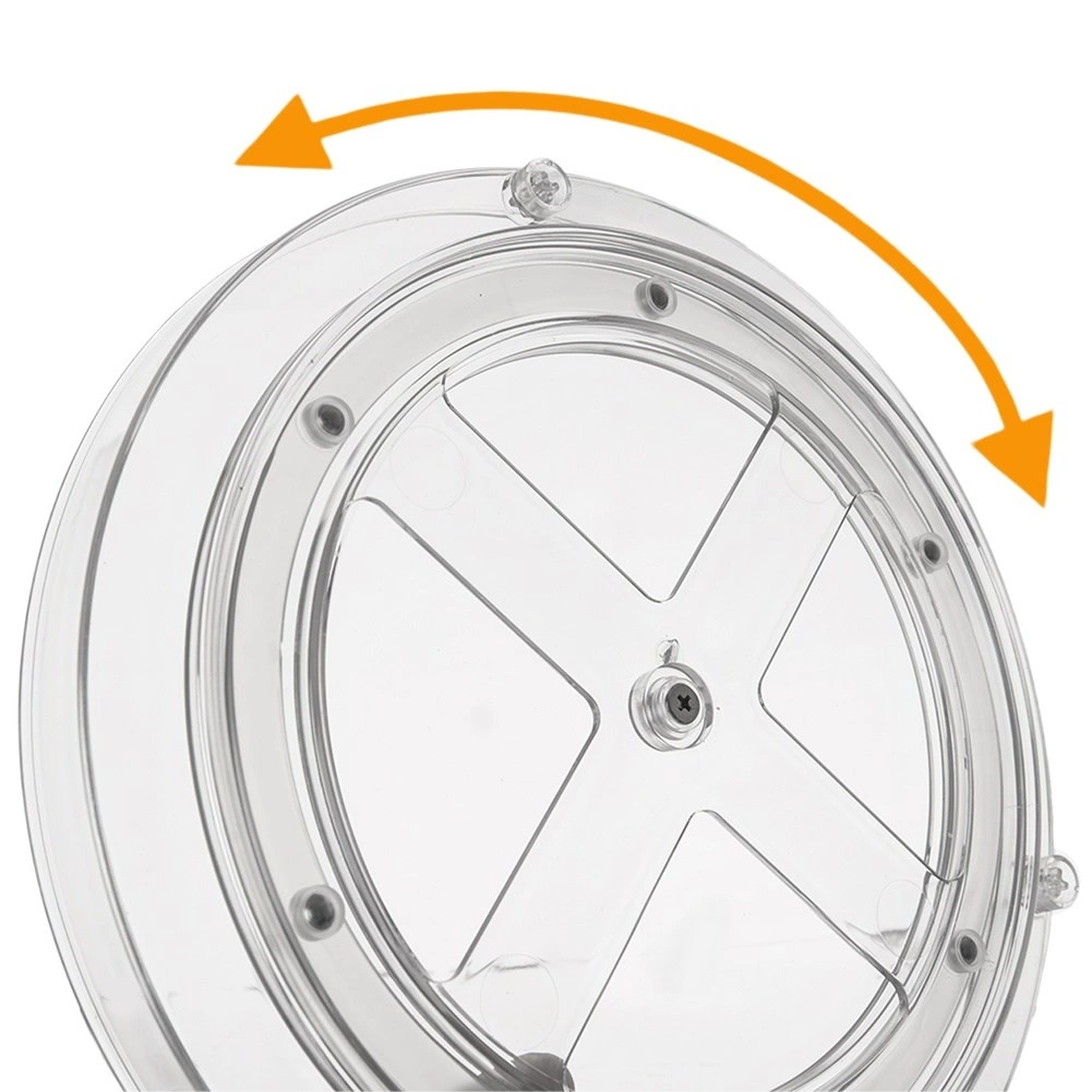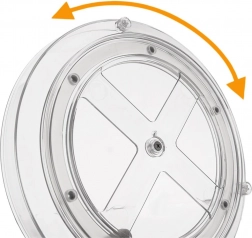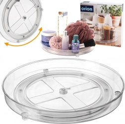 Vrtljivi organizator je pametna rešitev za red v kuhinji, kopalnici in shrambi. Stabilna okrogla osnova se vrti za 360°, zato zlahka dosežete vse stvari brez prerazporejanja. Premer 27 cm in višina 4,5 cm zagotavljata kompaktno, a presenetljivo prostorno shranjevanje.