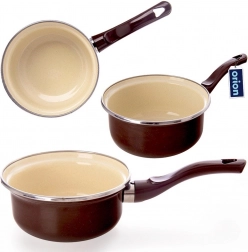 Stilski lonček BROWN združuje tradicionalen videz z moderno funkcionalnostjo. Ohišje iz kakovostnega jekla z emajlirano površino zagotavlja dolgo življenjsko dobo, enostavno čiščenje in varen stik z živili, primeren tudi za alergike. Kremna notranjost in rjava zunanjost sta dopolnjeni z nerjavnim robom za čisto vlivanje.