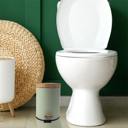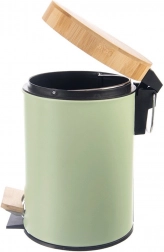 Ohranjajte dom urejen in stilski s kompaktnim kovinskim košem za odpadke GREENISH 3 l. Ohišje v mat pastelnem zelenem odtenku ter naravne bambusove podrobnosti ustvarjajo eleganten dodatek za moderne interierje. Zahvaljujoč stabilnemu podstavku in tihemu delovanju pokrova je udoben za vsakodnevno uporabo.