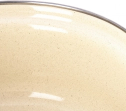 Emajlirana površina je prijazna do živil in jo je enostavno čistiti. Nerjavni rob povečuje odpornost proti poškodbam.