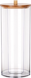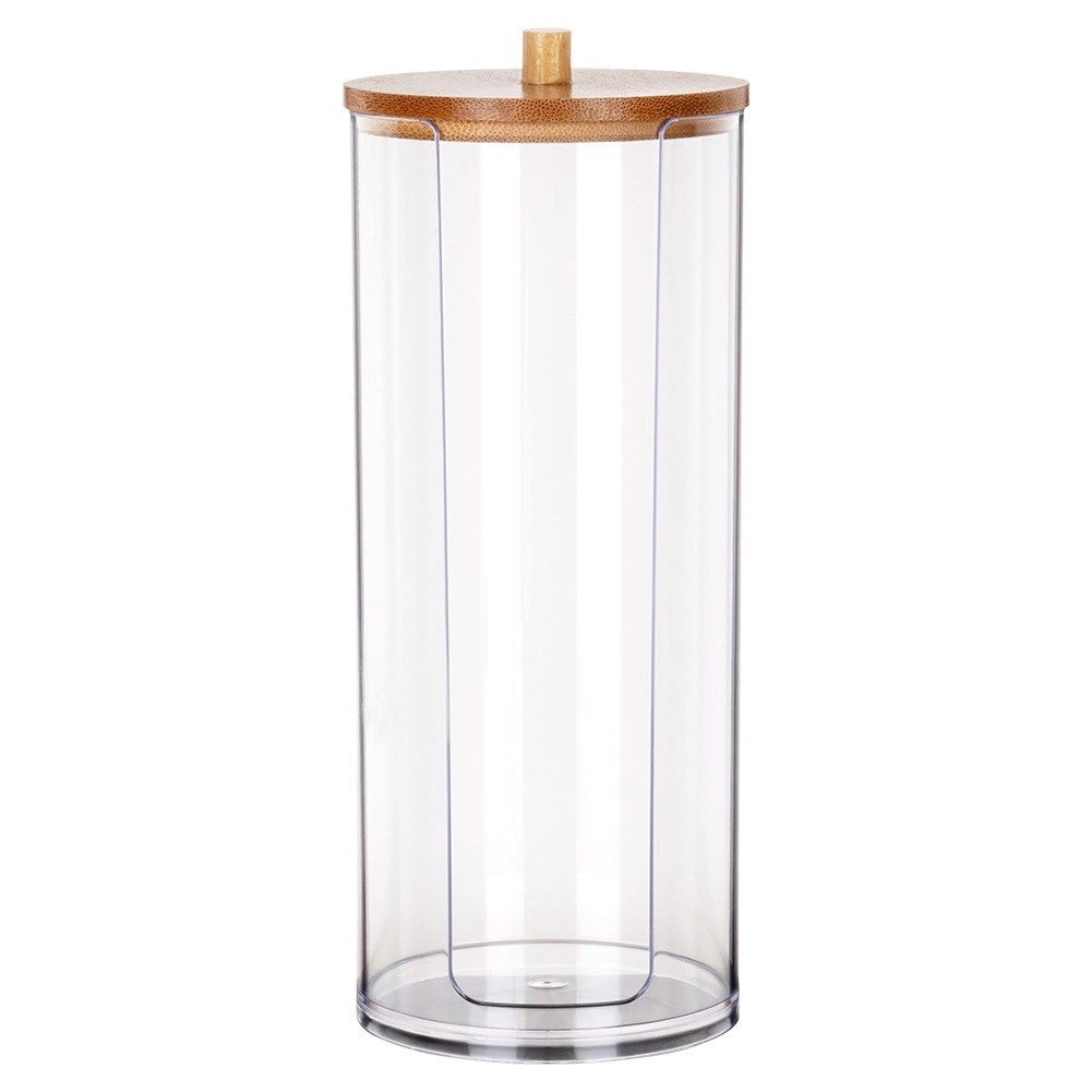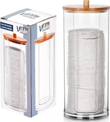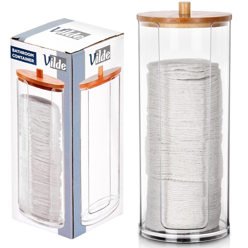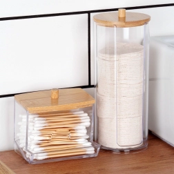 Slogoven in praktičen organizator za vsakodnevno nego. Prozoren akril zagotavlja odličen pregled nad vsebino, medtem ko bambusov pokrov z ročajem doda moderen videz in ščiti pred prahom. Idealna rešitev za pregledno in higiensko shranjevanje vatnih blazinic.