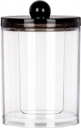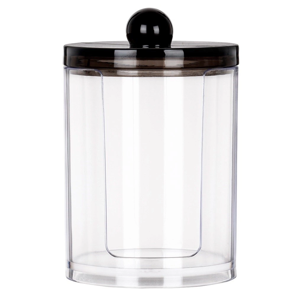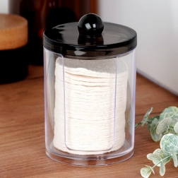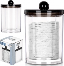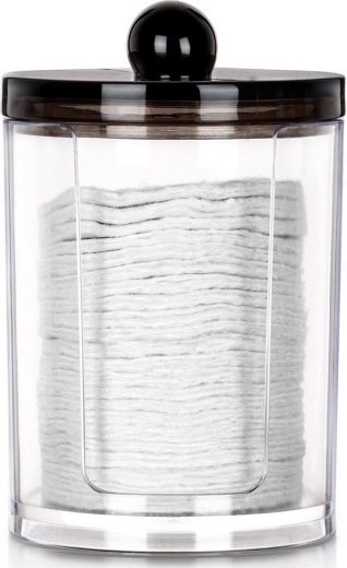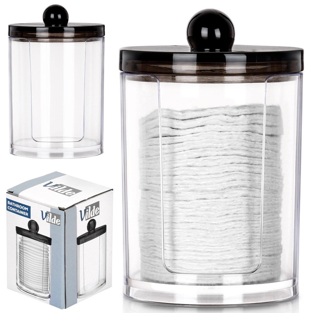 Eleganten organizator za kozmetične vatke iz kakovostnega prozornega akrila omogoča takojšen pregled zaloge, medtem ko čvrst črn pokrov s praktičnim gumbom ščiti vsebino pred prahom in vlago. Kompaktna velikost 7 × 11 cm prihrani prostor na umivalniku ali toaletni mizici, hkrati pa sprejme zadostno količino vatk za vsakodnevno uporabo.