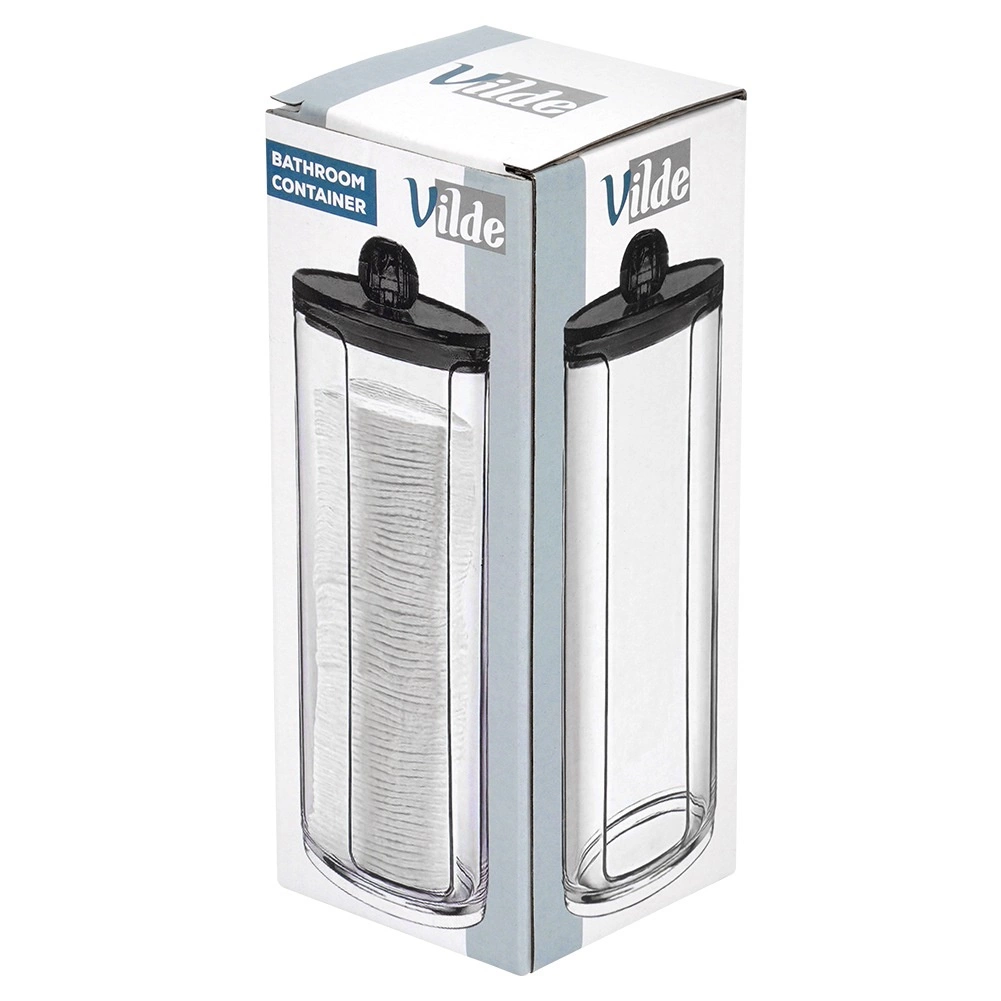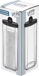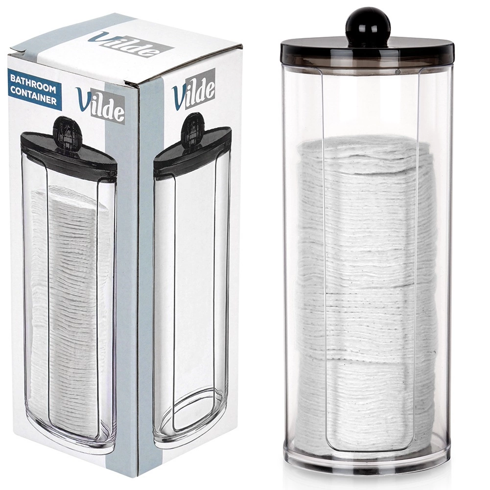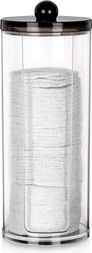 Ta eleganten organizator za vatne blazinice iz prozornega akrila združuje čist videz in visoko funkcionalnost. Prosojne stene omogočajo takojšen pregled vsebine, medtem ko pokrov z ročajem ohranja blazinice čiste in zaščitene pred prahom.
