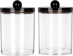 Minimalistična izvedba v prozorni in črni barvi se odlično poda na umivalniško polico, toaletno mizico ali v omarico. Široka odprtina olajša hitro dopolnjevanje, lahek in trpežen akril pa zagotavlja enostavno vzdrževanje in dolgo življenjsko dobo.