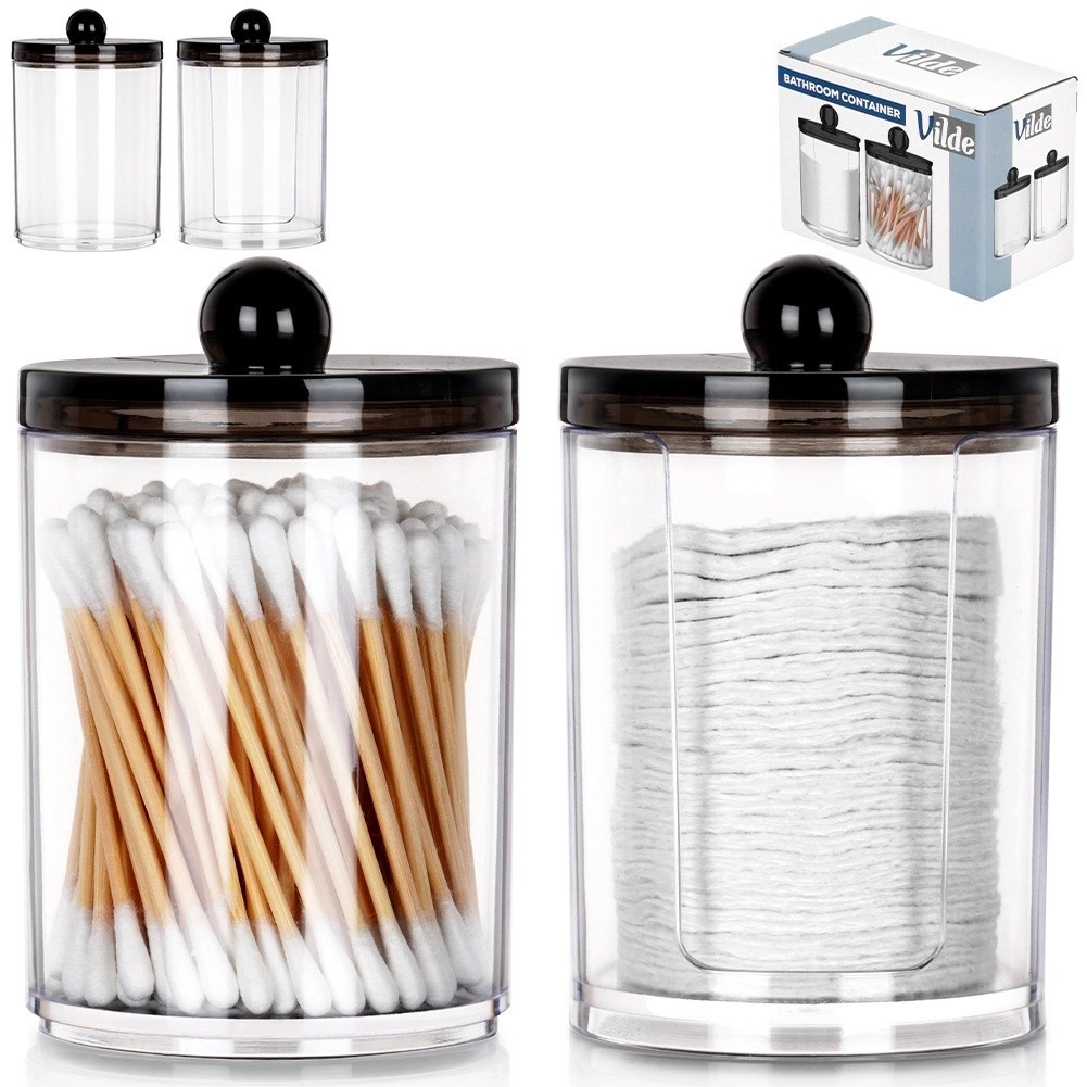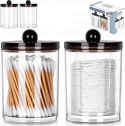 Ohranite svojo kopalnico urejeno in higiensko. Prosojne posode omogočajo takojšen pregled nad količino, pokrovi z udobnim gumbom ščitijo vsebino pred prahom in vlago. Zahvaljujoč podajalniku boste imeli blazinice vedno pri roki, druga posoda pa sprejme dovolj vatiranih palčk.