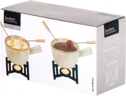 Segrevanje na čajno svečko zagotavlja enakomerno vzdrževanje temperature brez zapletene uporabe. Z dvema nerjavnima fondi vilicama z udobnimi lesenimi ročaji je serviranje enostavno in varno – idealno za pomakanje sadja, peciva, zelenjave ali mesa.