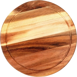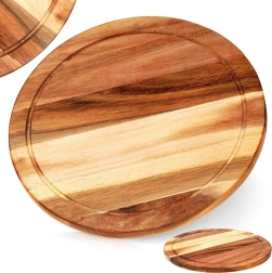 Kakovostna lesena deska iz naravnega akacijevega lesa združuje funkcionalnost in estetiko. Okrogla oblika z globokim žlebom zadrži sokove in drobtine, zato delovna površina ostane čista. Debelina 1,5 cm zagotavlja stabilnost in dolgo življenjsko dobo.