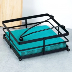 Stojalo za serviete MISTY združuje sodoben industrijski videz z vsakodnevno funkcionalnostjo. Zahvaljujoč uteženi ročici s pritiskom serviete ostanejo lepo poravnane in jih veter ne odpihne niti na balkonu, terasi ali na vrtu. Mat črno prašno lakiranje ščiti površino in daje eleganten videz, ki se poda v vsak interier.