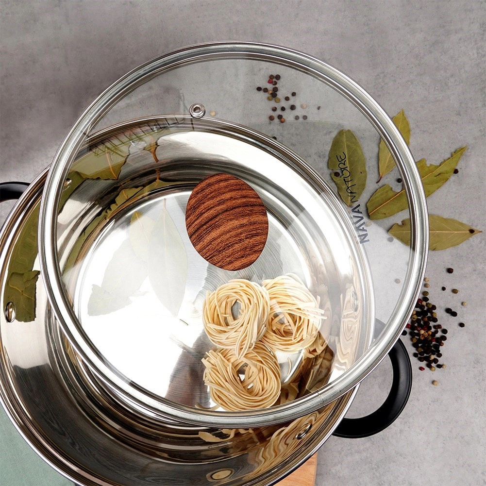Praktičen steklen pokrov NAVA Nature s premerom 24 cm je idealen dodatek k loncem, ponvam in kozicam enake velikosti. Toplotno odporno prozorno steklo omogoča nadzor nad kuhanjem brez dvigovanja, s čimer varčuje energijo ter ohranja toploto in vlago v posodi.