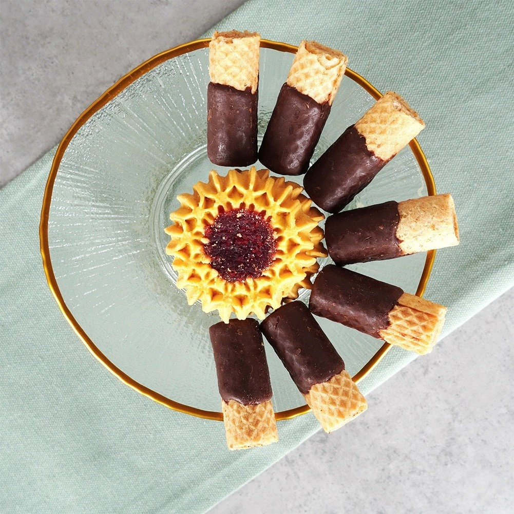 Zlato obrobljen rob in kristalni učinek stekla dodata vašemu pogrinjku eleganco ter poudarita postrežene deserte.