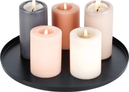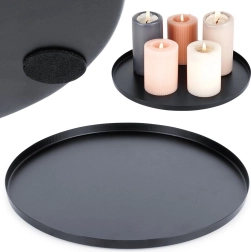 Ta kakovostna kovinska podloga v mat črni izvedbi je odlična za aranžiranje sveč, dekoracij ali nakita. Njen premer 30 cm in nežno privzdignjen rob zagotavljata stabilnost ter zaščito površin pred voskom in nečistočami. Zaradi brezčasnega videza se zlahka kombinira z različnimi slogi notranje opreme.