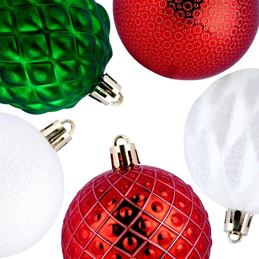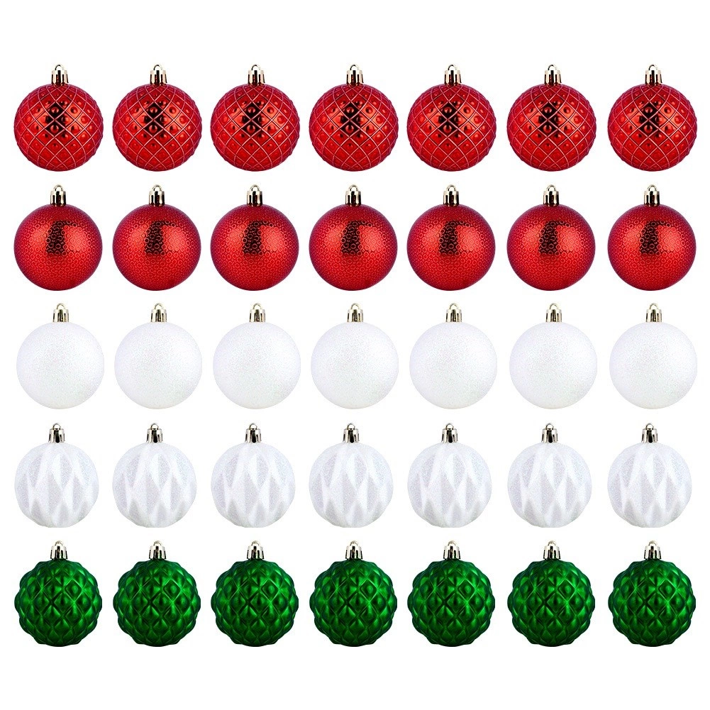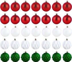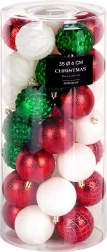 Praktično pakiranje vsebuje 35 krogel s premerom 6 cm v rdeči, zeleni in beli barvi, vključno z vrvicami za obešanje za hitro in preprosto dekoracijo.