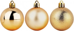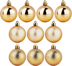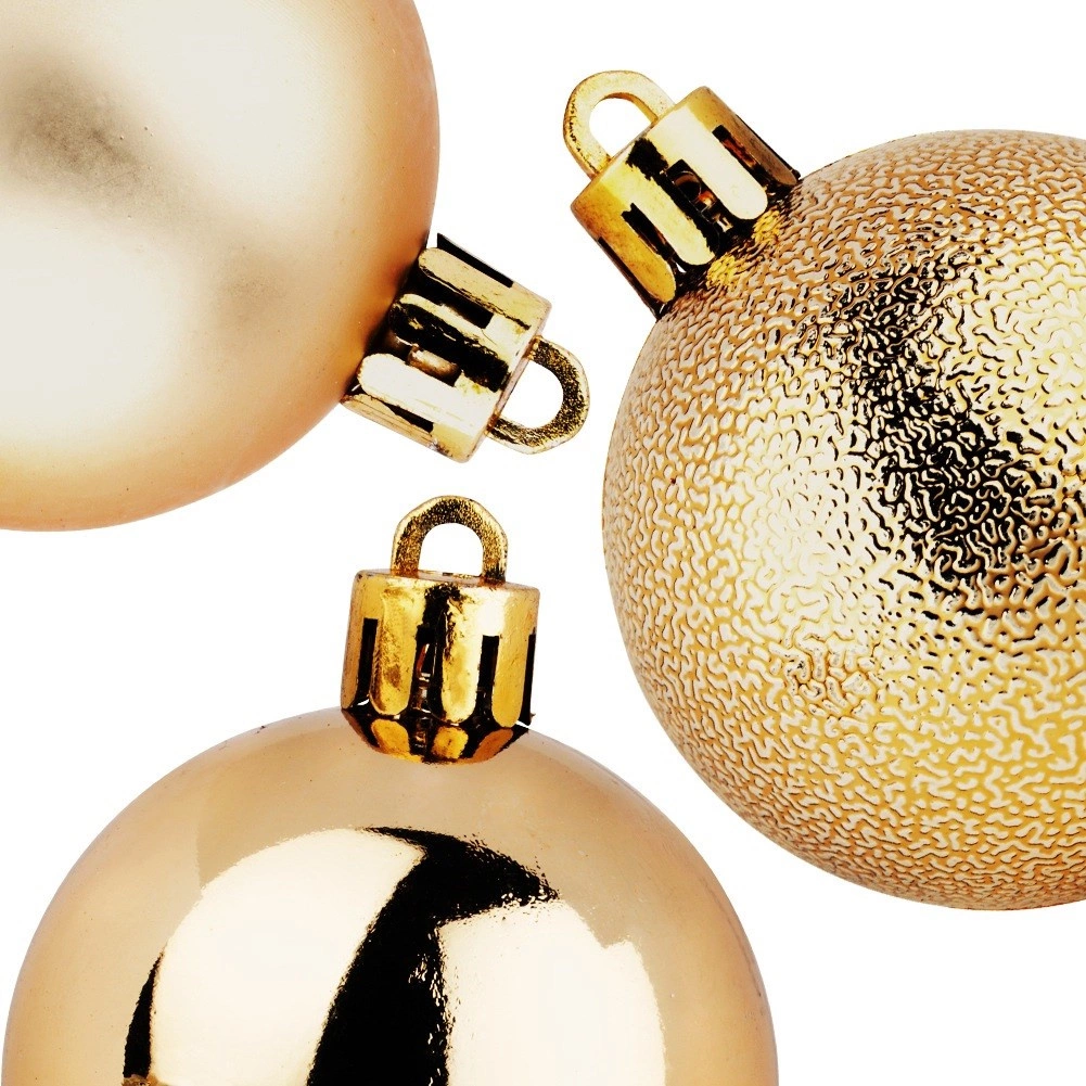 Ustvarite doma čarobno praznično vzdušje z setom zlatih božičnih krogel, ki združujejo tri površinske obdelave – sijaj, mat in strukturiran lesk. Odporna, nezdrogljiva izvedba verno spominja na steklo, a je bistveno varnejša in trajnejša.