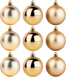Krogle so izdelane iz vzdržljivega nepolomljivega materiala, ki po videzu spominja na steklo, a je bistveno varnejši in trajnejši. Zlati odtenek dekoracijam dodaja eleganco in brezčasen slog, zato se lepo ujema tako s tradicionalnimi kot modernimi prazničnimi barvami.