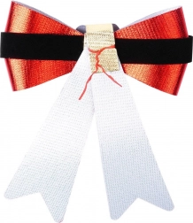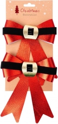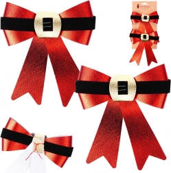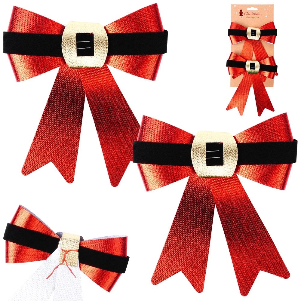 Te dekorativne mašne izstopajo z kovinskim rdečim sijajem in stilskim detajlom v obliki črnega pasu z zlato zaponko, ki evocira ikoničen božični motiv. Idealne so za okrasitev božičnega drevesa, vencev, oken, polic in izložb ter v hipu ustvarijo praznično vzdušje.