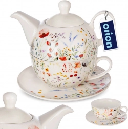 Izdelan je iz kakovostnega porcelana z nežnim dekorjem poljskega cvetja, ki lepo izstopa na vsaki mizi in se odlično ujema z drugim posodjem. Ergonomska ročaja olajšata rokovanje, pokrov ohrani čaj dlje časa topel in ga zaščiti pred nečistočami. Vzdrževanje je preprosto – komplet lahko pomivate v pomivalnem stroju in uporabljate v mikrovalovni pečici.