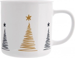 Uživajte v toplih pijačah v velikem slogu. Bel keramični vrč z elegantnim potiskom božičnih dreves v vsakdanje pogrinjke vnese praznično vzdušje. Zahvaljujoč veliki kapaciteti 500 ml boste dlje uživali v najljubši pijači brez pogostega dolivanja.