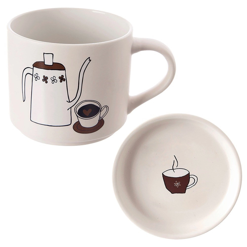 Nežna ilustracija čajnika in skodelice doda stil vsakemu pogrinjku, pokrov lahko uporabite tudi kot krožniček.